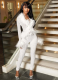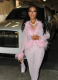 Fashionable Fur Collar Lace-up Top and Tight Stretch Pants Suit