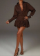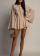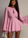 Fashion Solid Color Mesh Rhinestone Long Sleeve Short Dress