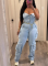 Fashionable Women's Clothing Acid-washed and Distressed Jumpsuit Two-piece Suit