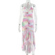 Sexy Halter Neck Gold Chain Pleated Bodycon Dress