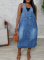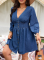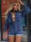 Light Blue Fashionable Washed High Elastic Long-Sleeved Jumpsuit