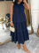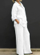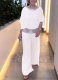 Stylish Pleated One-shoulder Top and Trousers Solid Color Casual Set