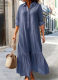 Fashionable and Elegant High-end Long-hem Gold-stamped Solid Color Dress