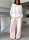 Striped Print Cropped Sweatshirt High Waist Wide Leg Pants 2-Piece Set