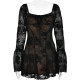 Sexy High-elastic Long-sleeved Ink Painting Mesh Rhinestone Dress
