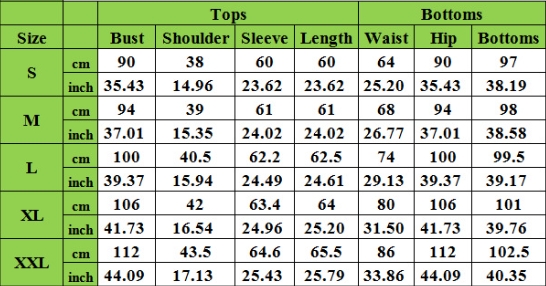 | Category | Two Pieces > Two Pieces Pants Sets |