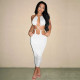 Irregular Hollow Drawstring Strap Halterneck Halter Dress