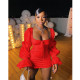 Fashion Casual Lace-Up Square Neck Puff Sleeve Dress