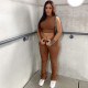 Sports And Leisure Tight-waisted Top And Piled Trousers Suit