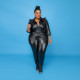 Solid Color Fashion Sexy Plus Size PU Two Piece Set