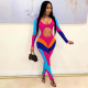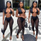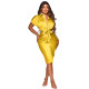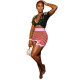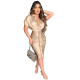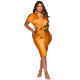 Fashionable And Sexy Halterneck Wrap Chest Cutout Stitching Mesh Dress
