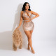 Fashion Hollow Sloping Shoulder Nightclub Sexy Dress