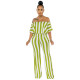 Fashion One Shoulder Short Sleeve Striped Pattern Jumpsuit