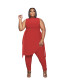 Plus Size Women's Irregular Tie Top Pleated Pants Two Piece Set