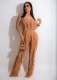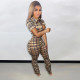 Check Print Slim Fit Crinkled Zip Short Sleeve Jumpsuit