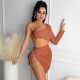 Three-Piece Solid Color Sexy Wrapped Breast Mesh Skirt