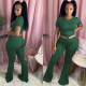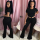 Short-Sleeved Shirt Ankle Top + Flared Pants Casual Jogger Suit