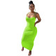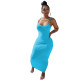 Ins Wind Solid Color Sexy One-Shoulder Strap Slit Long Skirt