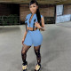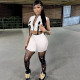 Sleeveless Zipper Fashion Casual Two Piece Set
