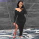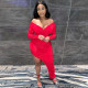 Off Shoulder Big V Neck Pleated Slim Fit Sexy Dress