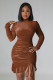 Autumn And Winter New Stand Collar Draw Pleated Ruffle Sexy Dress