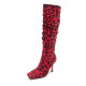 Fashion Leopard Print Square Head Fine High Heel Boots