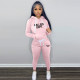 Plus Fleece Drawstring Letter Print Hooded Two-piece Set