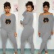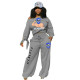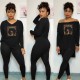 Casual Fashion Printed Logo Loose Off Shoulder Suit