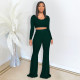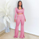 Long Sleeve Solid Color Sexy Two-piece Suit