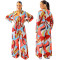 Printed Waist Long-sleeved Loose Wide-leg Casual Jumpsuit