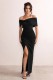 Bowknot One Word Collar Slit Women's Dress
