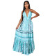 Fashionable Dolman Sleeve V-neck Open Back Printed Dress