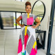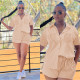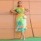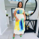 Round Neck Short Sleeve Printed Pleated Skirt Set