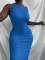 Blue Summer Fashion Casual Knitted Sleeveless Round Neck Dress
