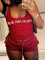 Wine Red Fashionable Printed Tank Top and Shorts Two-piece Set