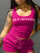 Rose Red Fashionable Printed Tank Top and Shorts Two-piece Set