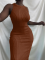 Brown Summer Fashion Casual Knitted Sleeveless Round Neck Dress