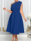 Blue Sexy Slope Neck High Waist Sleeveless Dress