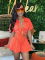 Orange Washed Distressed Waisted Lapel Wide Open Jumpsuit