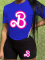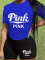 Blue O-Neck Letter Print Personalized Casual Two-Piece Suit