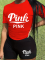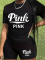 Pink O-Neck Letter Print Personalized Casual Two-Piece Suit