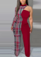 Sexy Contrast Color Stitching Fashion Print Jumpsuit