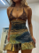 Sexy Backless Small Tube Top High Waist Printed Skirt Suit