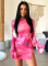Rose Red Round Neck Long Sleeve Slim Fit Slit Temperament Elegant Hip Dress