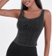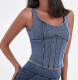 Elastic Tight-fitting Chest Padded Denim Yoga Camisole With Beautiful Back