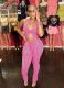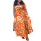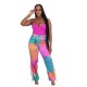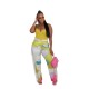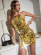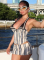 Printed Sleeveless Halter Neck Striped Contrast Color Hip Skirt Two-Piece Set
