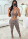 Sexy Knitted Low-Cut Hollow Belly-Exposing High-Waisted Slim-Fit Trousers Two-Piece Set
