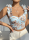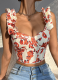 New V-Neck Sexy Print With Bra Pads Slim Backless Strappy Top
