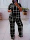 Striped Color-blocked Long-sleeved Shirt and Casual Trousers Suit