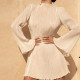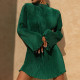 New Double-layer Pleated Slim Round Neck Trumpet Sleeve Hip Dress